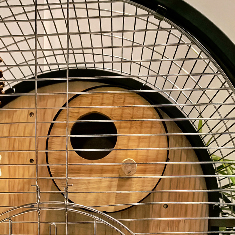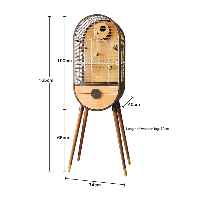 Sangkar burung kayu ini menggabungkan fungsi praktikal dengan estetika ekologi, menyediakan ruang hidup yang selamat dan bersih untuk burung.