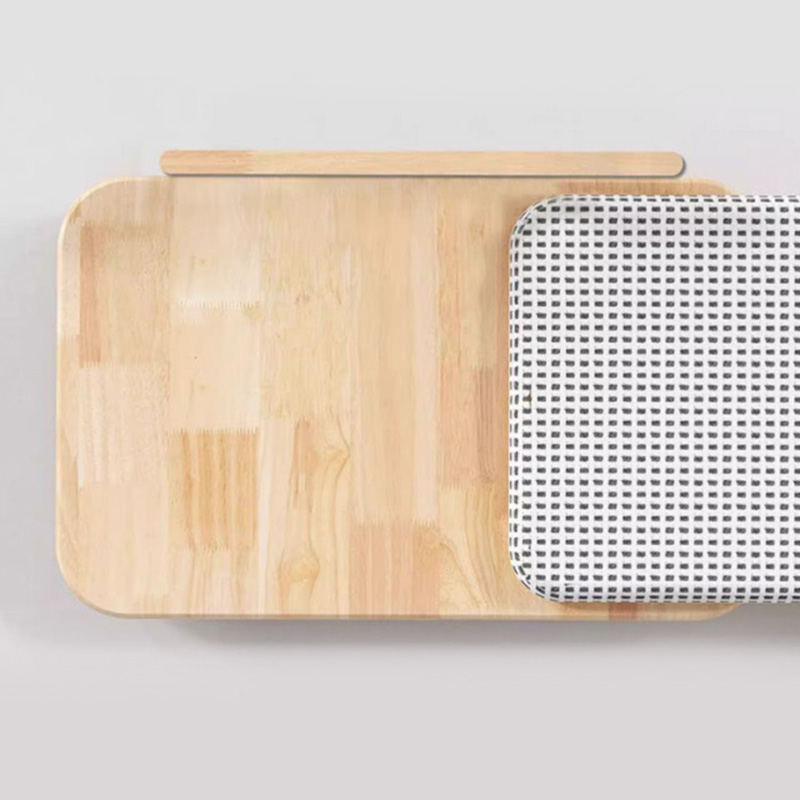Katil kucing diperbuat daripada AA gred rubberwood semua bingkai kayu pepejal, salutan minyak lilin kayu yang semulajadi dan mesra alam untuk mengelakkan kelembapan dan cendawan, lebih mudah dibersihkan, tahan lama dan tidak longgar.