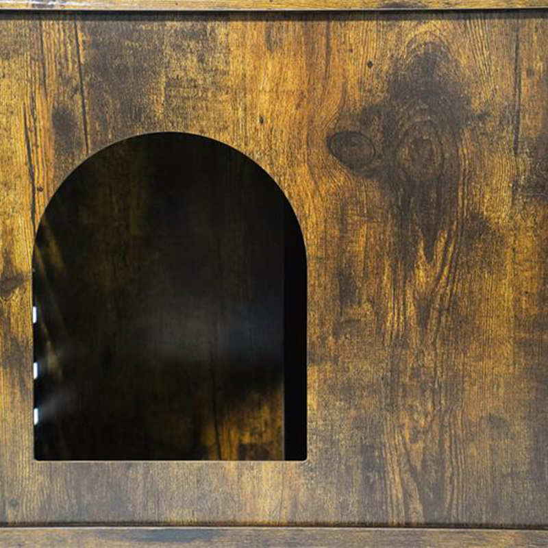 1. Ruang hidup pelbagai fungsi: Struktur tertutup sepenuhnya yang diperbuat daripada papan zarah yang mesra alam menyediakan persekitaran berehat yang selamat dan swasta untuk kucing. Kucing gaya perabot sangkar boleh diletakkan dengan fleksibel dengan kotak sampah, dan dengan reka bentuk dwi-akses pintu depan pintu melengkung, ia membolehkan kucing ke tandas lebih bebas.
