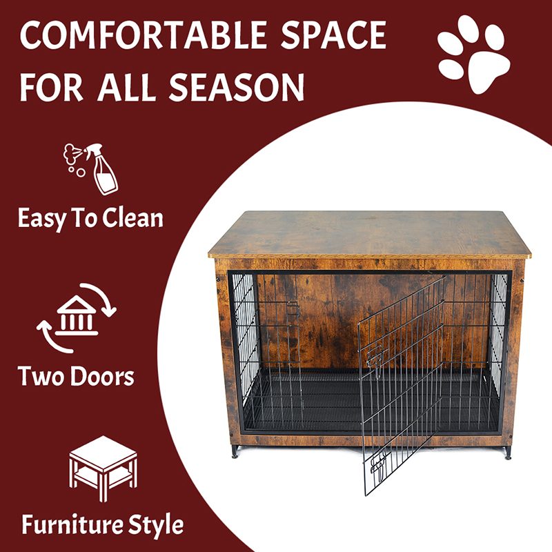 1. Bahan yang selamat dan sihat: Sangkar anjing gaya perabot dipilih bingkai kayu pepejal dengan dawai keluli karbon rendah, reka bentuk anti-cratch sudut, dulang plastik komposit ABS, keselamatan haiwan kesayangan.